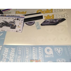 Los adhesivos suministrados son los que aparecen en la portada alrededor de la moto, claramente por los dos lados del carenado.