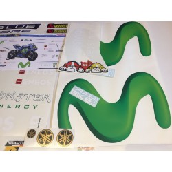 está compuesto de todos los adhesivos para completar vuestra Moto: Cúpula, Carenado tanto derecho como izquierdo, guardabarros, depósito, colín y frontal. Los adhesivos suministrados son los que aparecen en la portada. Realizados en vinilo profesional de altísima calidad. Se aconseja aplicar una capa transparente sobre los adhesivos. Adaptable a todos los tipos de moto.