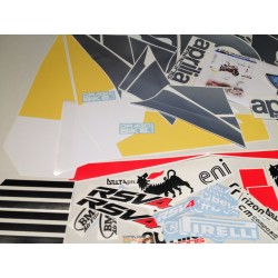 Il Kit Adesivo è composto da tutti gli adesivi per completare la vostra replica: Cupolino, Carene destre e sinistre, serbatoio, puntale, codino, forcellone e parafango. Realizzati in vinile professionale di altissima qualità si differenziano dai kit Adesivi economici per la maggiore durata nel tempo, inalterabilità nel colore e la maggiore plasticità dell'adesivo che consente di seguire meglio le forme arrotondate o a spigolo vivo della moto al momento dell'applicazione ed evita il ritirarsi dell'adesivo nel tempo. I nostri adesivi inoltre rispecchiano fedelmente sia i loghi che i caratteri del kit originale race replica.Gli adesivi forniti nel kit sono esattamente quelli che compaiano in copertina intorno alla moto ovviamente per i due lati della Carena.Per dare un effetto veramente professionale è consigliato applicare il trasparente sopra gli adesivi seguendo le istruzioni allegate ai nostri kit adesivi, ma non è indispensabile per la durata dello stesso.Nel kit adesivo non sono compresi i numeri gara salvo che siano presente in copertina intorno alla moto, cosi come i nomi cupolino che sono da acquistare a parte.Disponibilità: indicativamente 3 giorni dalla conferma d'ordine in quanto gli adesivi moto race replica vengono fatti su misura per la moto di destinazione. Adattabile a tutti i tipi di moto. E indispensabile specificare tipo strada o pista e marca, modello e anno della moto di destinazione: