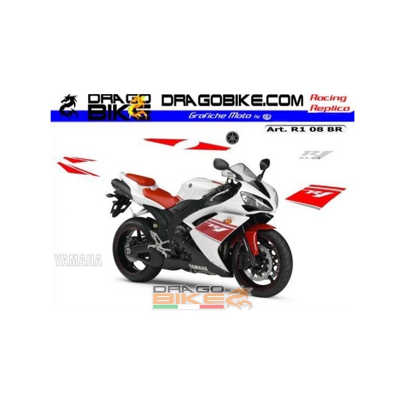 Kit Yamaha R1 2008 Bianco/RossaLa più fedele replica possibile delle grafiche originali per la Yamaha R1 2008.IL Kit è composto da tutti gli adesivi per completare la vostra replica: Cupolino, Carene destre e sinistre, serbatoio puntale codino e parafango. I kit sono una fedele copia ( MA di copia si tratta ) delle grafiche originali. La loro applicazione è simile alle grafiche della casa madre. Non vengono fornite solo delle parti, il kit è venduto COMPLETO: anche perchè è vivamente sconsigliato "abbinarli a quelli originali.
