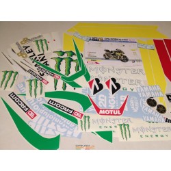 Il Kit Adesivo è composto da tutti gli adesivi per completare la vostra replica: Cupolino, Carene destre e sinistre, serbatoio, puntale, codino, forcellone e parafango.Il kit è completo dei portanumeri anteriore e posteriore con profili. Realizzati in vinile professionale di altissima qualità si differenziano dai kit Adesivi economici per la maggiore durata nel tempo, inalterabilità nel colore e la maggiore plasticità dell'adesivo che consente di seguire meglio le forme arrotondate o a spigolo vivo della moto al momento dell'applicazione ed evita il ritirarsi dell'adesivo nel tempo. I nostri adesivi inoltre rispecchiano fedelmente sia i loghi che i caratteri del kit originale race replica.Gli adesivi forniti nel kit sono esattamente quelli che compaiano in copertina intorno alla moto ovviamente per i due lati della Carena.Per dare un effetto veramente professionale è consigliato applicare il trasparente sopra gli adesivi seguendo le istruzioni allegate ai nostri kit adesivi, ma non è indispensabile per la durata dello stesso.Nel kit adesivo non sono compresi i numeri gara salvo che siano presente in copertina intorno alla moto, cosi come i nomi cuplino che sono da acquistare a parte. La disponibilità è indicativa in quanto gli adesivi moto race replica vengono fatti su misura per la moto di destinazione e dipendono dalle tempistiche di produzione. Adattabile a tutti i tipi di moto. E indispensabile specificare tipo strada o pista e marca, modello e anno della moto di destinazione.