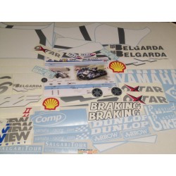 Kit Adesivo Moto Race Replica Yamaha Supersport 2002 Belgrada Team. I nostri Kit Adesivi riproducono fedelmente le grafiche delle moto da corsa. Il kit Race Replica è composto da tutti gli adesivi per completare la vostra Moto: Cupolino, Carene sia destre che sinistre, parafango, serbatoio, codino e puntale. Gli adesivi forniti sono quelli che compaiano in copertina. Realizzati in vinile professionale di altissima qualità. E' consigliato applicare il trasparente sopra gli adesivi. Adattabile a tutti i tipi di moto. Made in Italy
