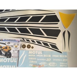 Kit Adesivo Moto Race Replica Yamaha 50 anniversary Laguna Seca 2005 . I nostri Kit Adesivi riproducono fedelmente le grafiche delle moto da corsa. Il kit Race Replica è composto da tutti gli adesivi per completare la vostra Moto: Cupolino, Carene sia destre che sinistre, parafango, serbatoio, codino e puntale. Gli adesivi forniti sono quelli che compaiano in copertina. Realizzati in vinile professionale di altissima qualità. E' consigliato applicare il trasparente sopra gli adesivi. Adattabile a tutti i tipi di moto. Made in Italy